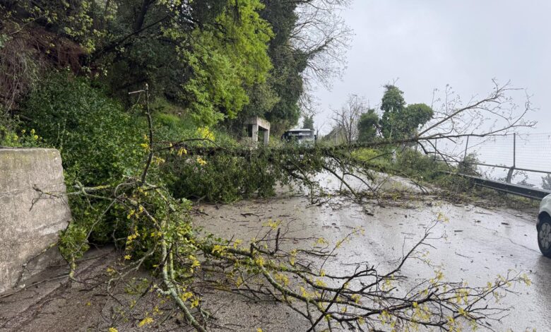 Caduto un grosso albero a Teramo, lungo via Biondi, nel tratto che conduce a Colleatterrato.