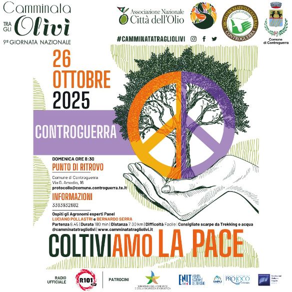 “L’evento – dichiara l’assessore Fabrizio Di Bonaventura – è un’occasione importante per promuovere il nostro territorio, in cui l’olivicoltura rappresenta un autentico patrimonio di eccellenza. Siamo orgogliosi di accogliere questa manifestazione che unisce cultura, natura e prodotto locale, contribuendo a far conoscere la nostra identità e a valorizzare il lavoro dei produttori. Il tema di quest’anno, “Coltiviamo la Pace”, ci invita a riflettere sul significato profondo del nome Controguerra e sulla responsabilità civica di ognuno di noi, che si manifesta nelle piccole azioni del quotidiano: nel rispetto per l’ambiente, nella cura del prossimo e nella tutela delle nostre eccellenze.