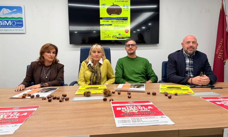Nel suggestivo borgo di Leofara torna uno degli appuntamenti autunnali più attesi: la 44ª edizione della Festa della Castagna, in programma sabato 25 e domenica 26 ottobre, con la consueta organizzazione dell’Associazione I’Fere 2.0 ETS, il patrocinio del Comune di Valle Castellana, Consorzio Bim e in collaborazione con l’Istituto Di Poppa-Rozzi di Teramo e Ager. A presentare la manifestazione oggi al Consorzio Bim sono intervenuti la consigliera delegata al turismo Teodora Piccioni, la presidente dell’Associazione I’Fere 2.0 ETS Annunziata Esposito, il vice-presidente Nicola Ferrara e l’attore Roberto Di Donato.
