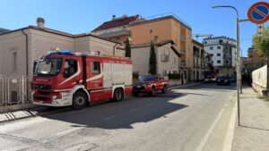 Intervento questa mattina a Viale Crucioli del vigli del fuoco del comando di Teramo dopo la segnalazione dell’allentamento di un cavo elettrico, che collega una palazzina al cantiere della Casa dello Studente.