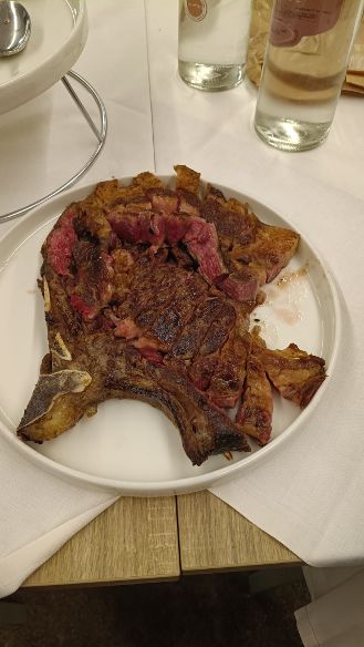Dopo una piacevole ouverture con bruschetta e verdure grigliate (tutto il pane viene prodotto da Gianni) iniziamo la serata tematica con una MANZETTA PRUSSIANA, femmina bovina di razza FRISONA allevata prevalentemente per la produzione di latte. Solo alcuni capi