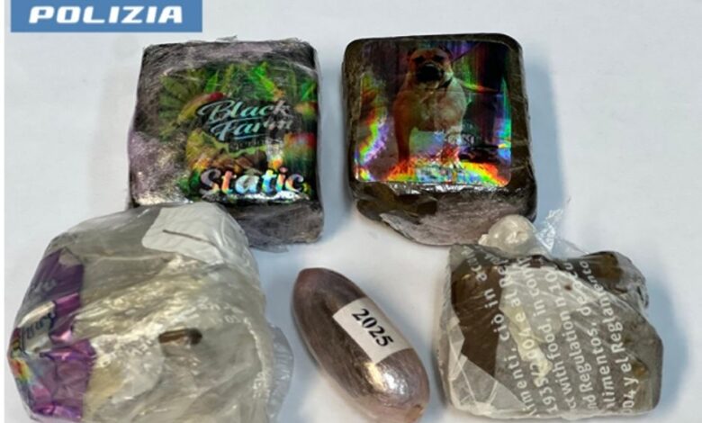 I due, sottoposti a perquisizione personale e domiciliare, sono stati trovati in possesso di circa 3 etti di cocaina e 185 grammi di hashish. L’hashish è stato rinvenuto nella cucina dell’abitazione degli uomini, nascosto, all’interno del contenitore dell’acqua della macchinetta elettrica del caffè. Tre piccoli involucri contenenti cocaina sono stati rinvenuti sempre in cucina in una ciotola contenente riso. La restante cocaina, divisa in 25 ovuli, è stata rinvenuta nascosta in uno zaino, trovato all’interno della stanza da letto.