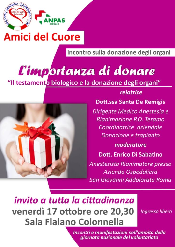 Colonnella. Il mondo del volontariato rappresenta, da sempre, un valore e a Colonnella l’associazione Amici del Cuore ha organizzato tre eventi, tra loro collegati, che si svolgeranno nei prossimi giorni, in previsione per l’appunto della giornata nazionale del volontariato.