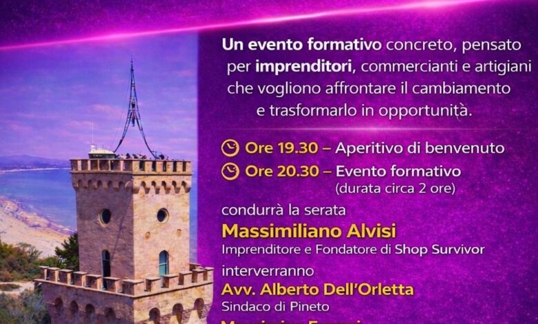 Mercoledì 4 febbraio alle ore 20:30, al Teatro Polifunzionale di Pineto, si terrà una tappa del tour formativo Shop Survivor, ideato dall’imprenditore Massimiliano Alvisi.