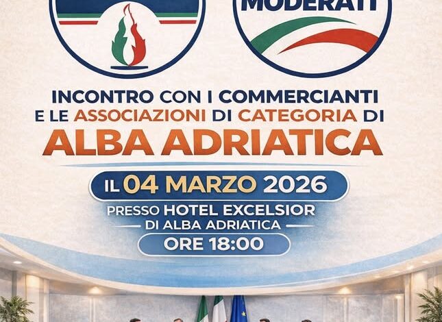 L’incontro, promosso dalle segreterie cittadine di Noi Moderati e Fratelli d’Italia, è in programma mercoledì 4 marzo, alle ore 18 nei locali dell’Hotel Excelsior di Alba Adriatica.