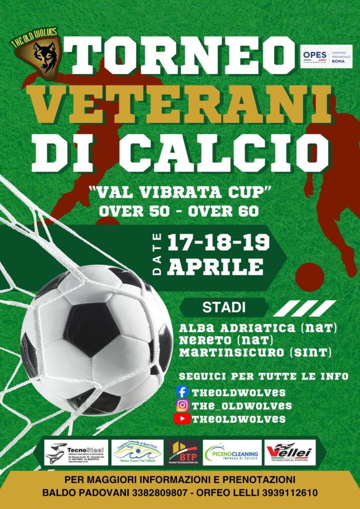 Sono i numeri della prima edizione della Val Vibrata Cup, il torneo di calcio dedicato ai veterani in programma nel fine settimana (sabato 18 e domenica 19 aprile) che si svolgerà negli stadi di Alba Adriatica e Nereto.