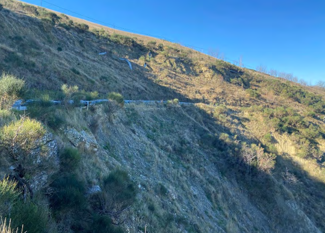 La strada provinciale per circa 300 metri presenta una formazione del tipo calanco che gli eventi atmosferici del 2017 hanno sottoposto ad un violento fenomeno di erosione con rilevanti danni alla viabilità provinciale. A valle, infatti, il fenomeno erosivo ha provocato lo svuotamento della massicciata sottostante la strada, il conseguente danneggiamento delle barriere di sicurezza e il restringimento in alcuni punti della carreggiata.