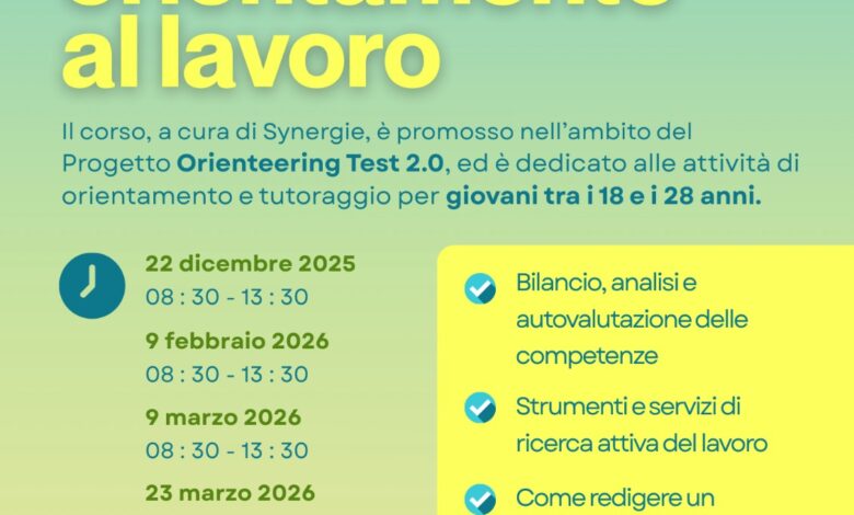 “Progetti come Orienteering Test 2.0 – dichiara l’Assessora al Sociale del Comune di Pineto, Camilla Scianitti – rappresentano un investimento concreto sui nostri giovani. Offrono strumenti pratici e percorsi mirati per crescere, orientarsi nel mondo del lavoro e costruire il proprio futuro. Pineto è orgogliosa di ospitare queste lezioni e di contribuire attivamente alla loro realizzazione e ringrazio tutti i comuni dell’Ambito per il lavoro comune su questo fronte e la Formatalenti e Synergie per la competenza nella gestione dei corsi. La partecipazione è aperta ancora, quindi anche chi non ha seguito la prima lezione può partecipare alle altre in programma”.