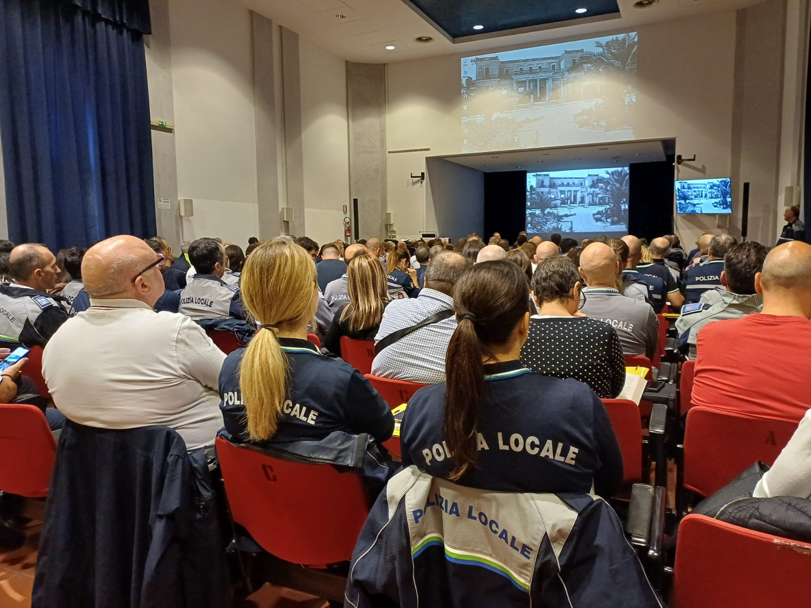 Giulianova. Gremita, la sala Kursaal, la scorsa settimana, per la due giorni teorica e pratica di approfondimento organizzata dal Comando della Polizia Municipale e dal Comune di Giulianova, con il patrocinio della Presidenza del Consiglio Regionale.