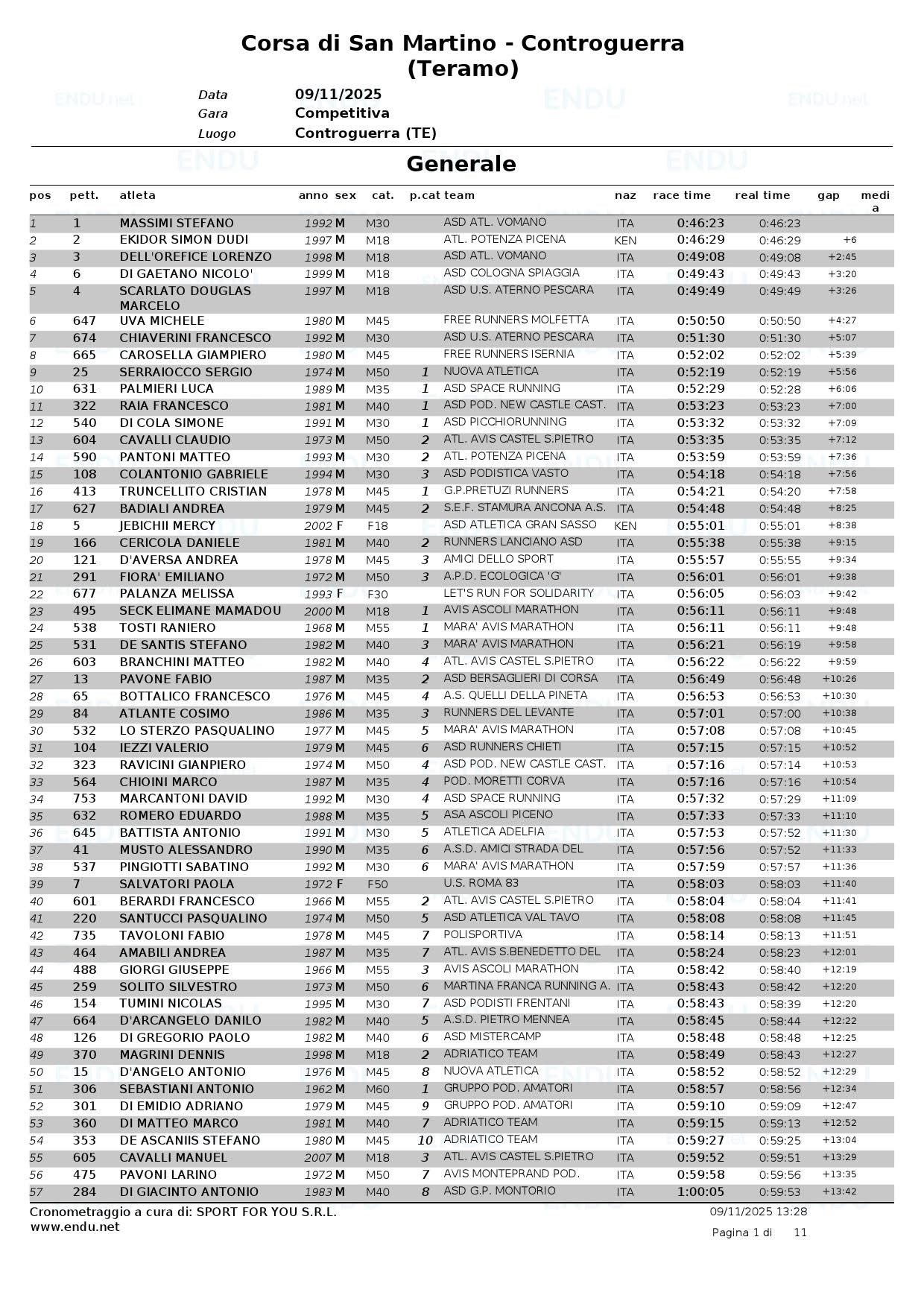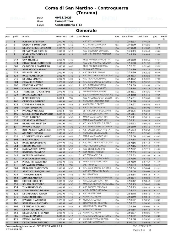LE CLASSIFICHE COMPLETE SONO DISPONIBILI SU www.endu.net – Corsa di San Martino