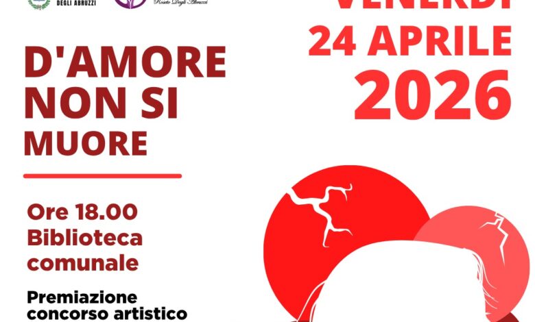 L’Amministrazione Comunale di Roseto degli Abruzzi, insieme alla Commissione Pari Opportunità, annuncia la cerimonia di premiazione della quinta edizione del concorso artistico “D’Amore non si muore”.