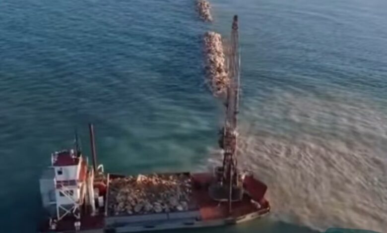 Martinsicuro. Ripresi i lavori di posizionamento delle scogliere sul tratto sud di Villa Rosa. Nelle ultime ore, infatti, il motopontone ha ripreso le attività di posizionamento degli scogli nei tratti ancora non protetti.