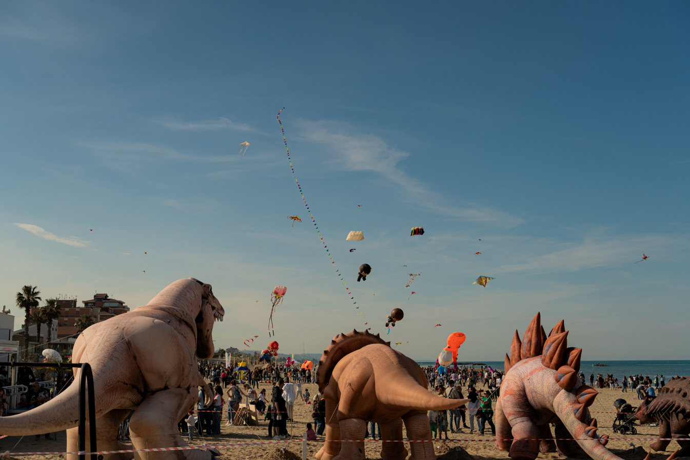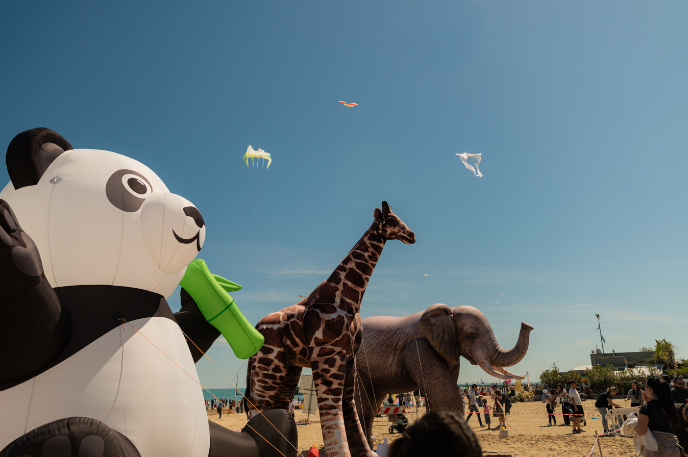 Non si è trattata di una semplice esibizione, ma di una vera e propria immersione nella cultura del volo. Oltre 30 aquilonisti professionisti, provenienti da tutta Italia, hanno dato vita a coreografie sorprendenti con aquiloni di ogni forma e dimensione. Passeggiando sull’arenile, i visitatori hanno potuto ammirare le geometrie degli aquiloni statici che hanno fatto da cornice alle evoluzioni tecniche di quelli acrobatici. A rendere lo scenario ancora più magico sono state le imponenti figure gonfiabili posizionate sulla sabbia, animali giganti d’aria che hanno fatto da cornice all’evento.