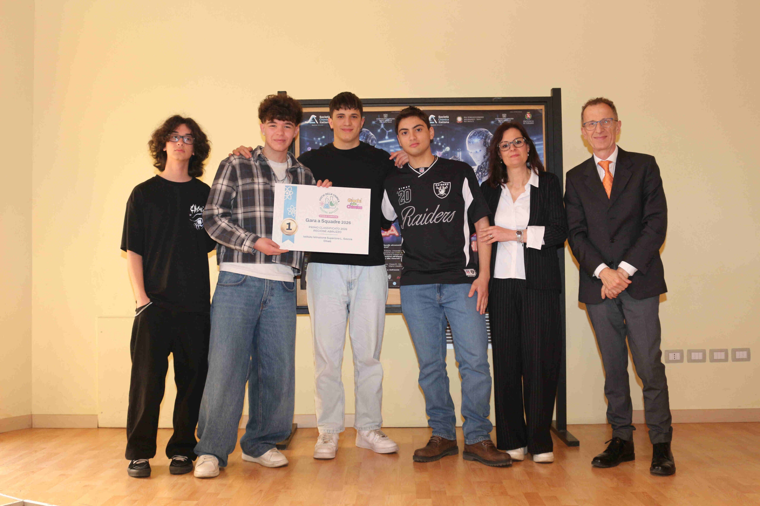 Nella competizione “a squadre” questi gli istituti premiati. Categoria scuole chimiche: I.I.S. “Luigi Di Savoia” Chieti (1° classificato); I.I.S. “Moretti” Roseto degli Abruzzi (2° classificato); Istituto Omnicomprensivo Guardiagrele (3° classificato). Categoria scuole non chimiche: Polo Agrario dell’I.I.S. “Di Poppa-Rozzi” Teramo (1°, 2° e 3° classificato).