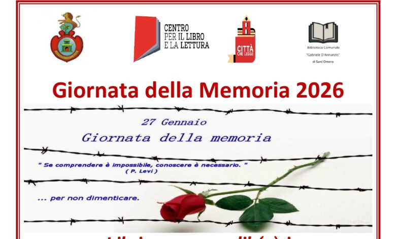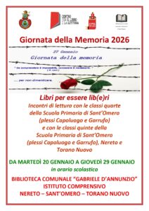 Sant’Omero. La Biblioteca Comunale “Gabriele D’Annunzio” di Sant’Omero celebra la “Giornata della Memoria” con un’iniziativa culturale dal titolo “Libri per essere lib(e)ri”, promossa dall’Amministrazione Comunale con vari appuntamenti.