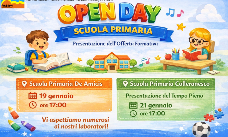 Giulianova. Prendono il via, a partire dal 19 gennaio con la Primaria De Amicis, i nuovi Open Day del Comprensivo 1 di Giulianova.