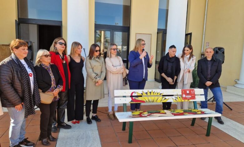 Giulianova, consegnata la panchina d’autore contro la violenza di genere
