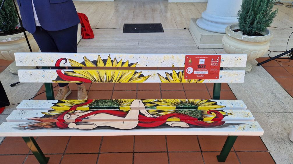 Realizzata dall’artista Sabrina Piccioni, da un’idea dello stilista Loris Danesi, la panchina veicola un messaggio di sensibilizzazione contro il femminicidio. Sullo schienale, peraltro, compare il numero verde anti violenza 1522.
