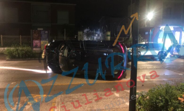 Giulianova, incidente in viale Orsini: auto si ribalta dopo l’impatto