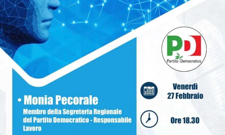 Giulianova. Alla luce del crescente ruolo acquisito dall’intelligenza artificiale sul mondo del lavoro, venerdì 27 febbraio, alle ore 18.30, il Partito Democratico di Giulianova ha organizzato, in Sala Bruno Buozzi, un incontro con Monia Pecorale, Membro della Segreteria Regionale del Partito Democratico responsabile per il Lavoro, e Valentino Grossi, consulente e formatore AI.