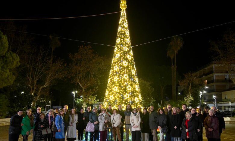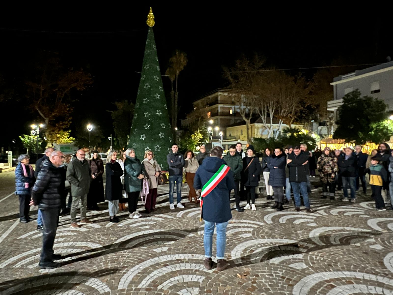 Giulianova. Con una breve cerimonia, ieri sera, 7 dicembre, in piazza Giovanni XXIII, è stato acceso e benedetto l’albero di Natale, anche quest’anno donato dalla famiglia Di Nicola, titolare del marchio Globo.