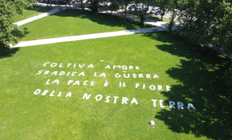 La prossima installazione abruzzese proporrà un verso di denuncia, lungo svariate decine di metri, realizzato con giornali assemblati come piccoli pezzi di Lego. Questi versi, visibili dall’alto grazie all’uso di droni, diventano veri e propri messaggi visivi di protesta. In questo caso specifico, l’installazione temporanea prenderà la forma di un grido rivolto al Governo attuale, denunciandone la posizione nei confronti di Israele.