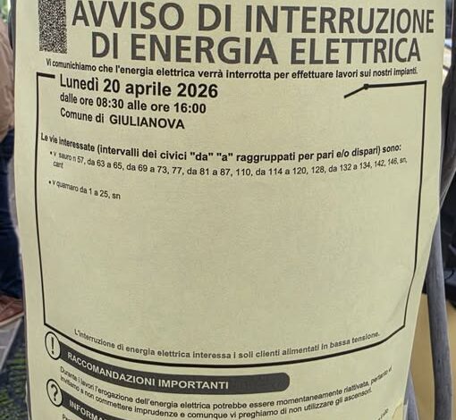 A Giulianova è prevista un’interruzione temporanea dell’energia elettrica per consentire interventi di manutenzione e miglioramento della rete.
