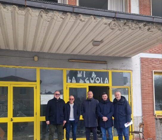 Giulianova. Cantiere ufficialmente aperto, da questa mattina, 9 febbraio, nella dismessa scuola di via Lepanto. I lavori sono stati consegnati all’impresa appaltatrice, la Feliziani Italo Srlu di Teramo, alla presenza del Sindaco Jwan Costantini, dell’assessore ai Lavori Pubblici Matteo Francioni, del funzionario dell’ Ufficio Tecnico Fabrizio Iacovoni, del progettista dell’opera, l’ingegner Franco Porrini.