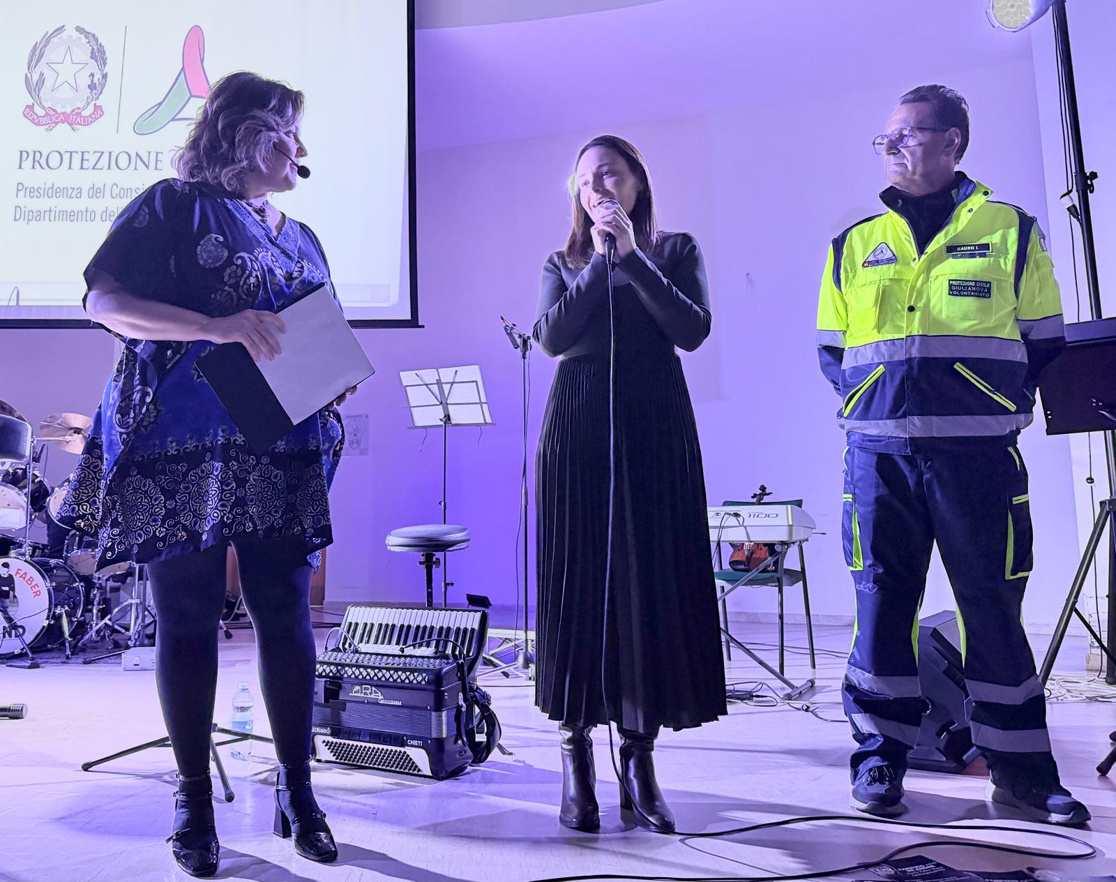 Prima dell’inizio del concerto, l’assessore Albani e Mauro Iaconi, Presidente del Gruppo Volontari di Protezione Civile (a cui è stato devoluto il ricavato della serata) hanno espresso parole di sincera riconoscenza per un’iniziativa che ha rappresentato una sintesi perfetta tra solidarietà e cultura, generosità e arte.