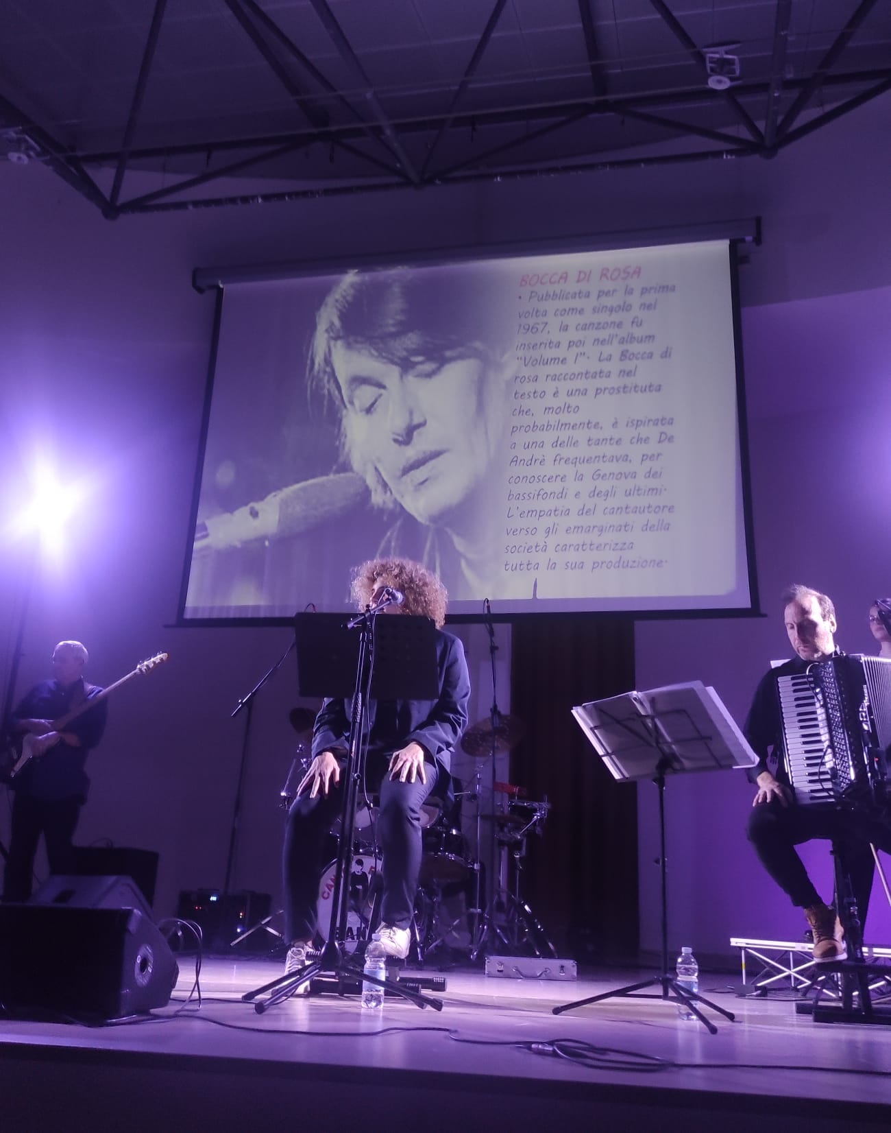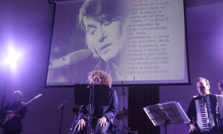 Giulianova. L’assessore alle Politiche Sociali e alla Protezione Civile Lidia Albani ringrazia la band “Canto Faber” che, ieri pomeriggio, 22 febbraio, nella Sala Polifunzionale “I Pioppi”, ha portato sul palco il suo tributo, in musica e immagini, a Fabrizio De Andrè.