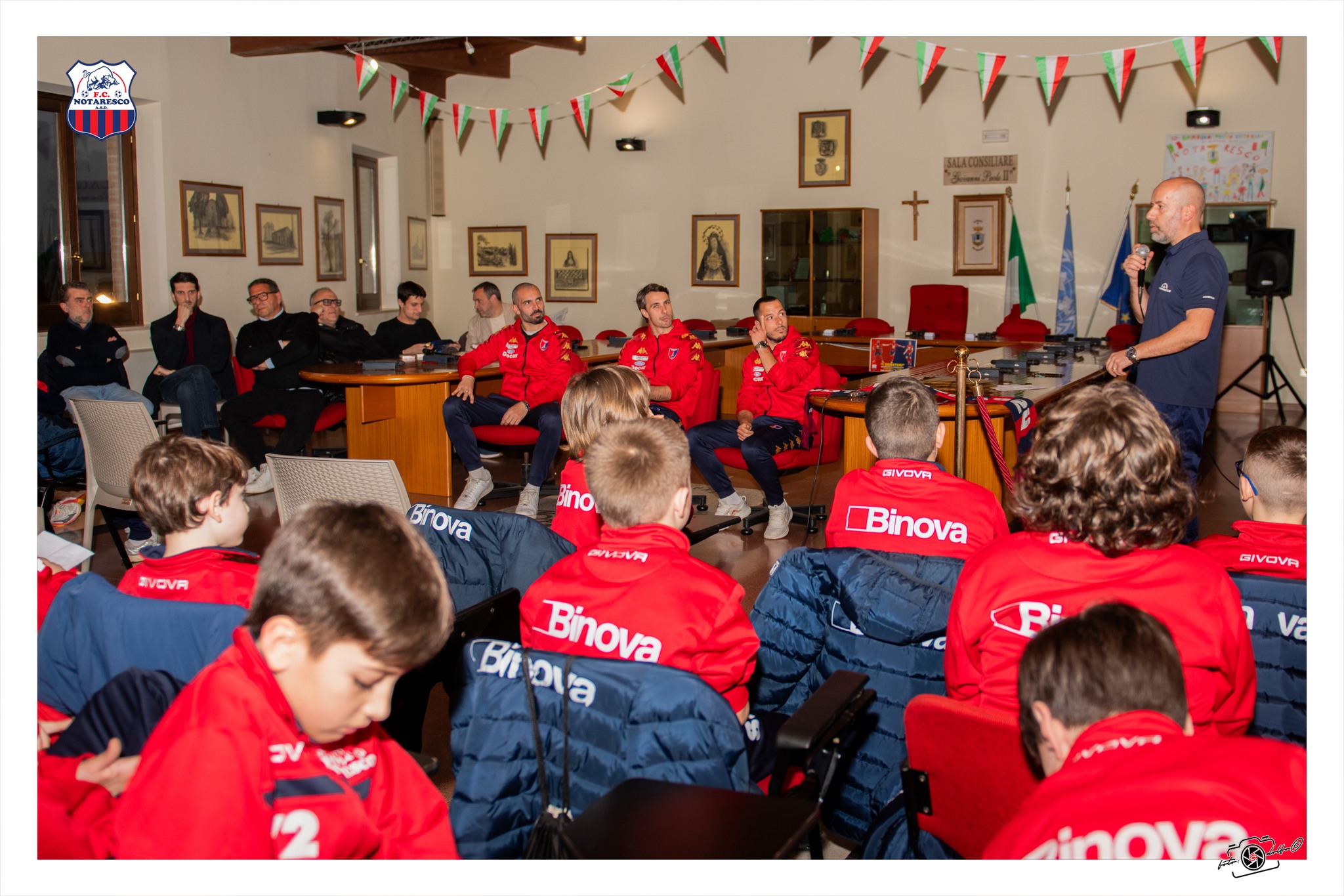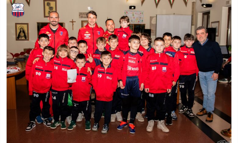 Molto nutrita la partecipazione dei bambini e ragazzi della scuola calcio e del settore giovanile della F.C. Notaresco, felici ed emozionati di incontrare i loro beniamini, che si sono presentati all’incontro portando in dono tre loro maglie ufficiali da gara.
