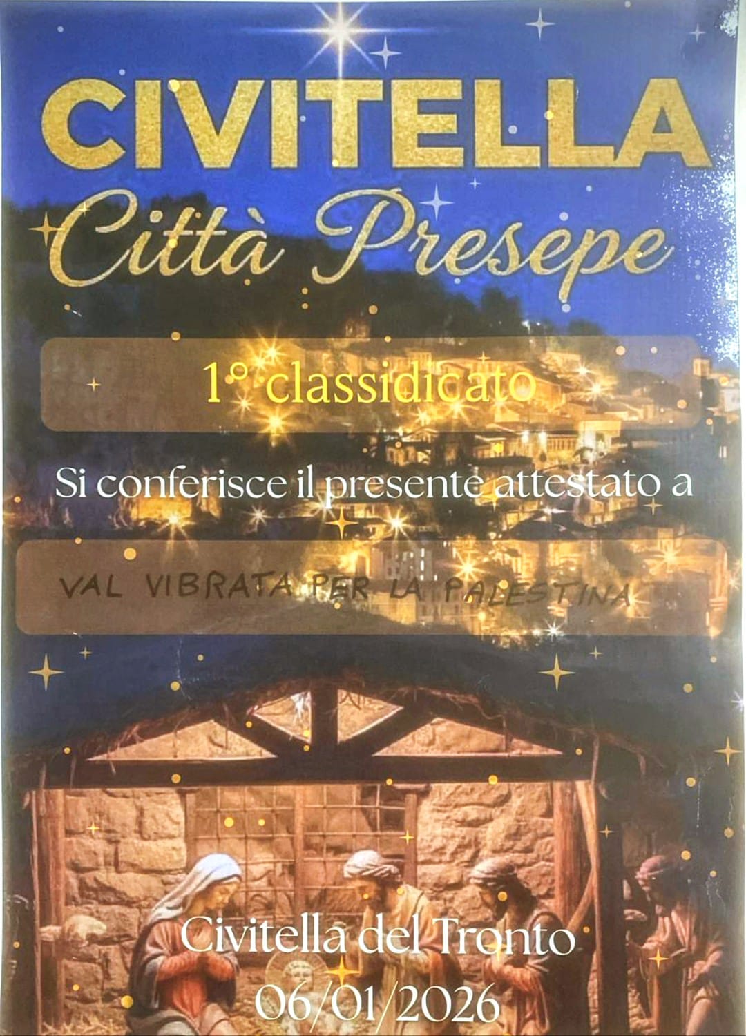 Il presepe ritorna finalmente ad avere, con questa narrazione, un lessico chiaro; quello della solidarietà con i nostri fratelli e le nostre sorelle della Palestina e di tutti quei luoghi dove il potere opprime e saccheggia. Nel ritrovare il senso più profondo inteso dal suo inventore, San Francesco d’Assisi, noi, con il nostro presepe, diciamo NO alla complicità dei governanti nel genocidio del popolo palestinese.