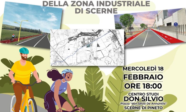 L’Amministrazione comunale di Pineto incontrerà cittadini e imprese il prossimo 18 febbraio 2026 alle 18 nel Centro Studi Don Silvio, in piazza don Silvio De Annuntiis a Scerne, per illustrare il progetto della nuova pista ciclabile a servizio della zona industriale di Scerne.