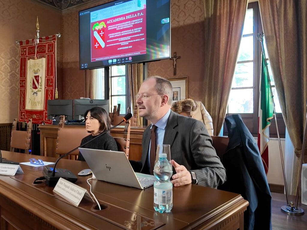 Chi addestra chi, la trasparenza e accuratezza del procedimento, l’elemento probatorio sono quindi essenziali per introdurre l’IA non solo nella gestione degli appalti ma in tutte le procedure amministrative. Gli interventi di Pasquale Andrea Chiodi, dirigente pubblico ed esperto di contrattualistica e di Domenico de Rinaldis, esperto di amministrazione digitale hanno animato la mattinata di formazione cui hanno partecipato numerosi dipendenti comunali e provinciali.
