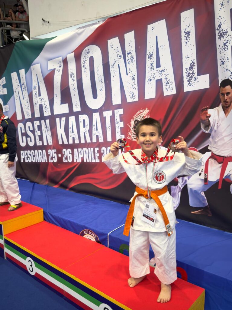 Doppio 3° posto – due Medaglie di Bronzo in due specialità diverse, kata e palloncino. Una prestazione eccezionale che dimostra talento, versatilità e grande spirito agonistico.