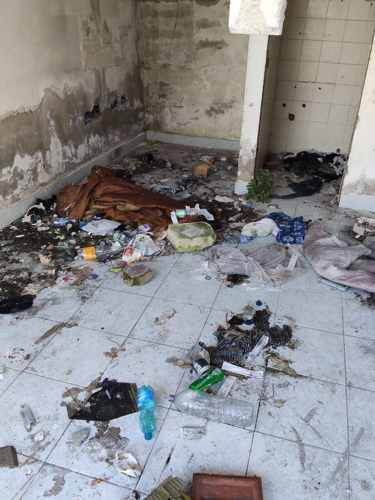 e propria “stanza del buco”, disseminata di siringhe usate e rifiuti.