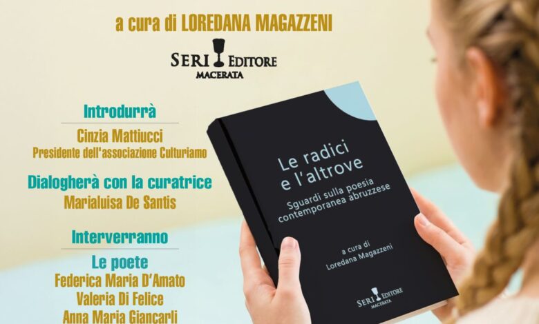 Giulianova. L’Associazione CulturiAmo ha organizzato, con il patrocinio del Comune di Giulianova, per domenica 1 febbraio alle ore 17.00, nella Sala Bruno Buozzi, la presentazione dell’antologia Le Radici e l’Altrove. Sguardi sulla poesia contemporanea abruzzese a cura di Loredana Magazzeni.