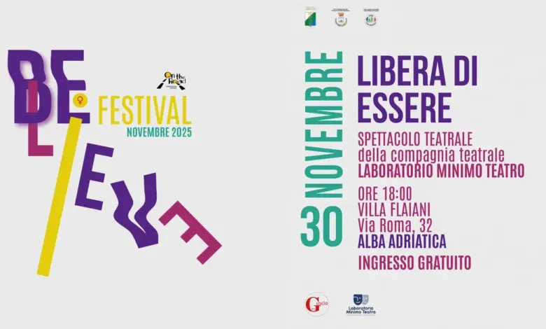 La seconda edizione del Believe Festival si avvia alla conclusione con un appuntamento speciale dedicato alla cittadinanza: domenica 30 novembre 2025 alle ore 18:00, negli spazi di Villa Flaiani, in Via Roma 32 ad Alba Adriatica, andrà in scena “Libera di Essere”, opera teatrale della Compagnia Laboratorio Minimo Teatro di Ascoli Piceno. L’iniziativa è realizzata in collaborazione con l’Associazione Il Guscio, con il patrocinio del Comune di Alba Adriatica e della Commissione Pari Opportunità del Comune di Alba Adriatica.