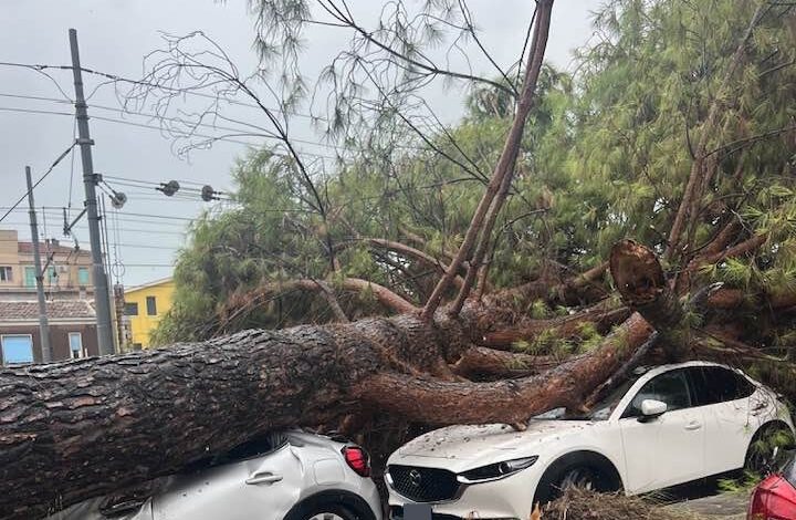 Maltempo, albero si abbatte su auto nel parcheggio della stazione a Silvi