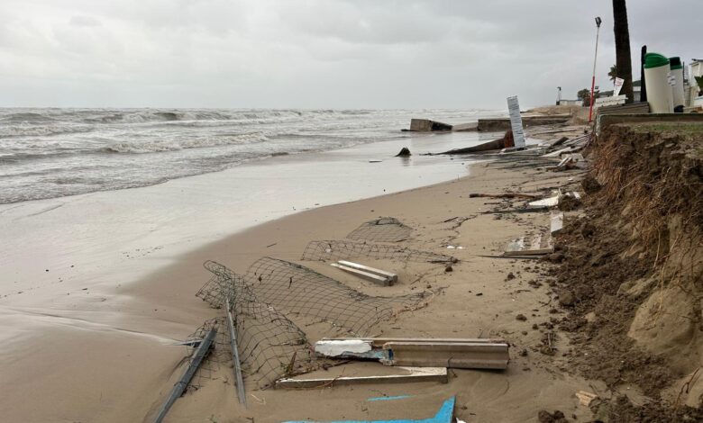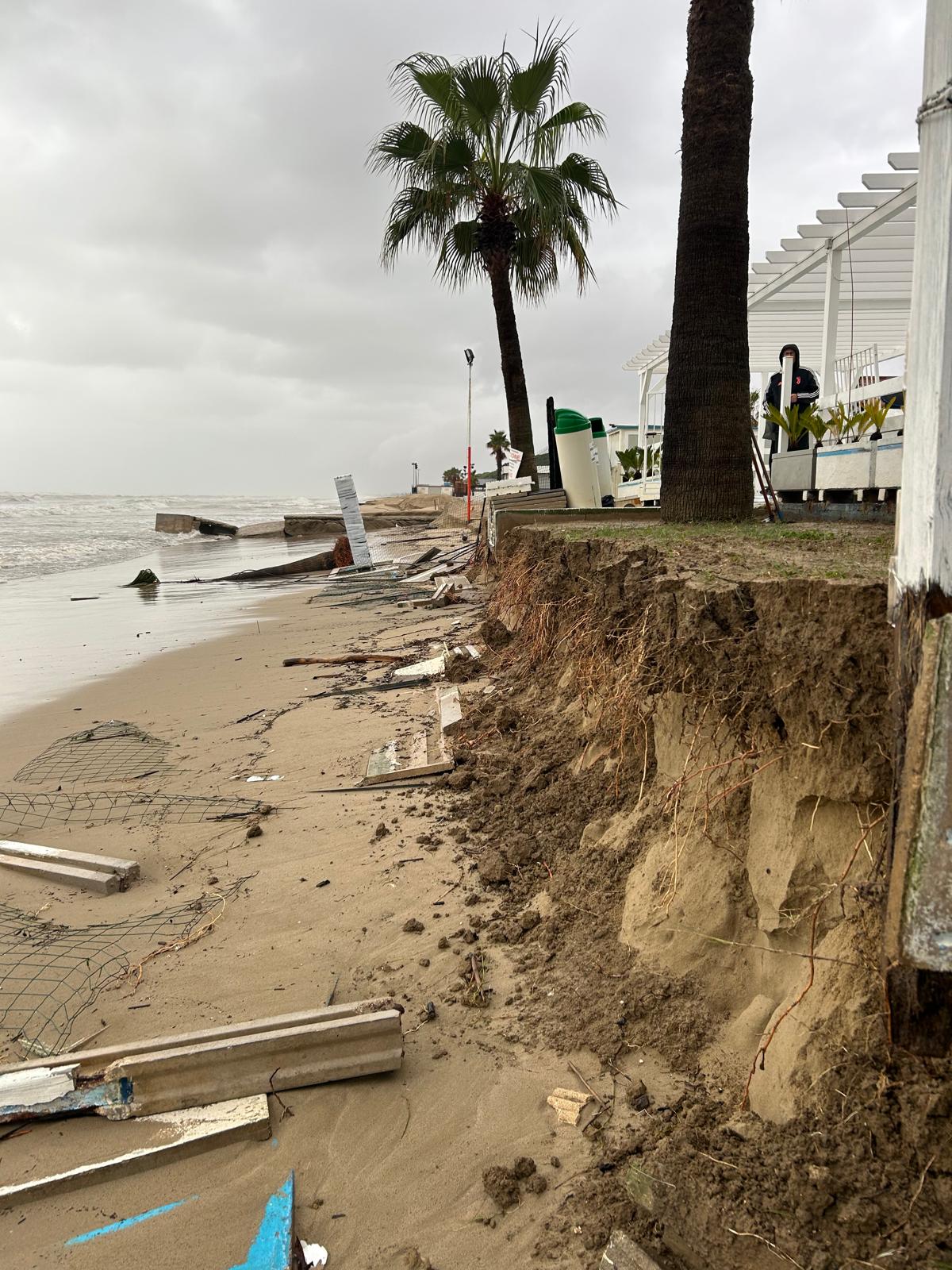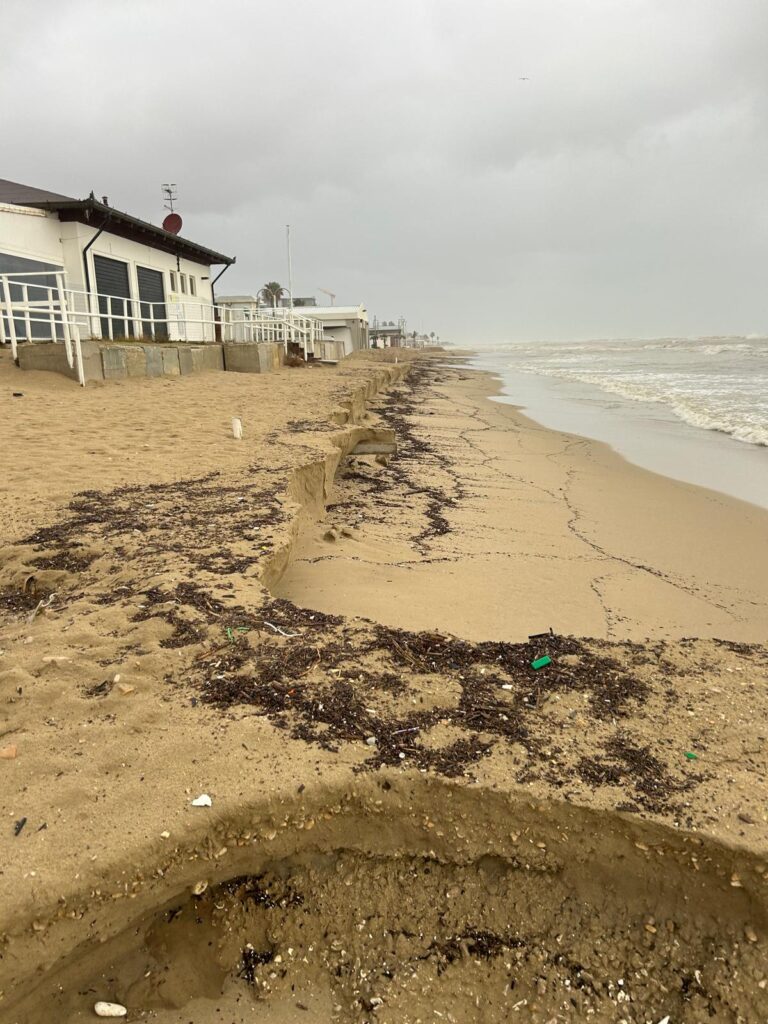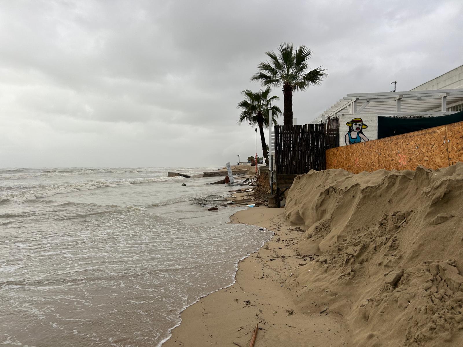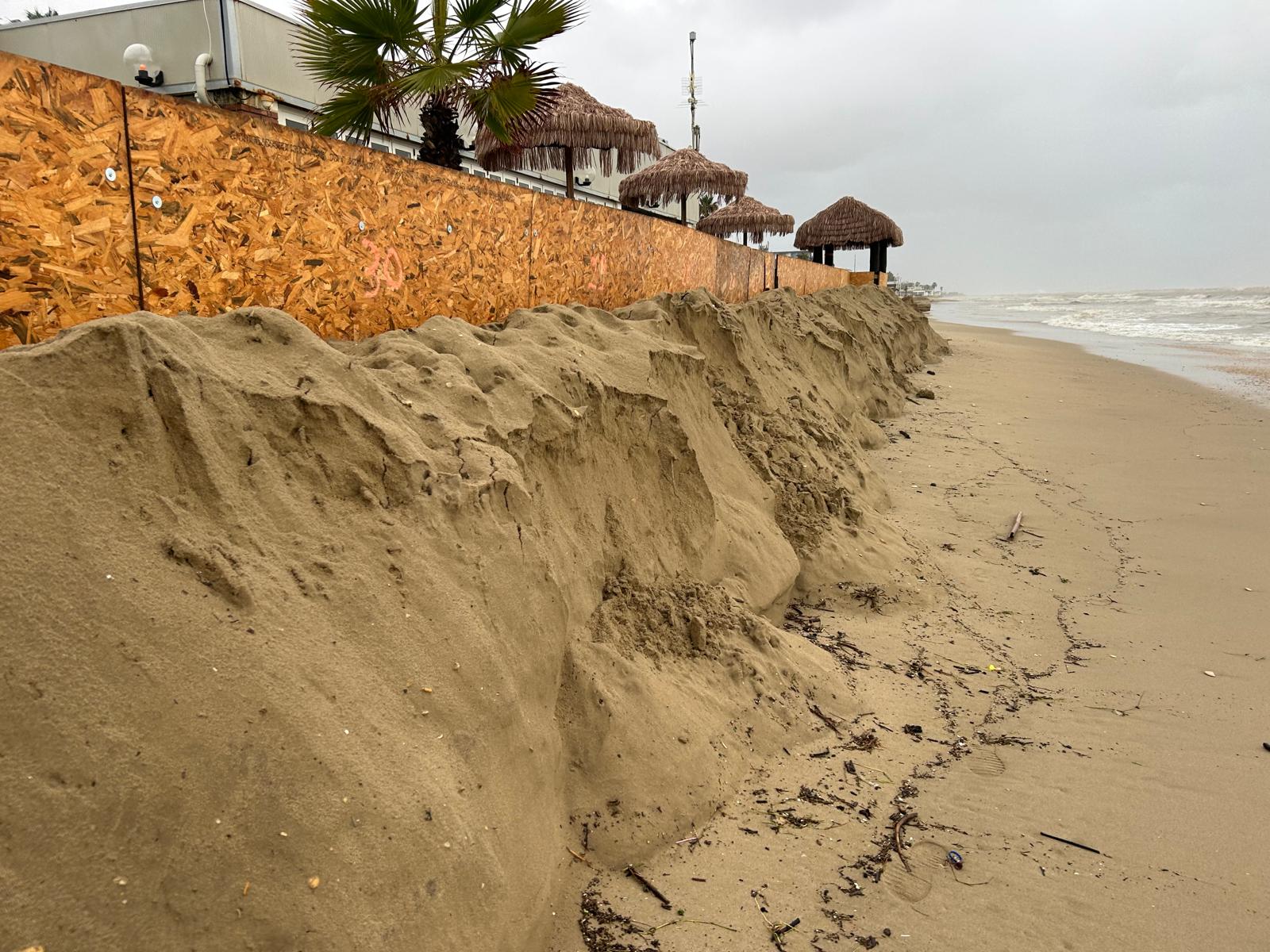 Quella a sud delle scogliere già collocate, nel contesto del piano di difesa della costa. Era piuttosto scontato ipotizzare, in questo frangente nel quale i lavori proseguono verso sud, dover sopportare dei rischi con la forza del mare che erode tratti di battigia, in maniera più significativa, nelle zone non protette. I danni maggiori sono stati accusati alla concessione Newport, dove il mare ha abbattuto una palma ornamentale in uso allo chalet.