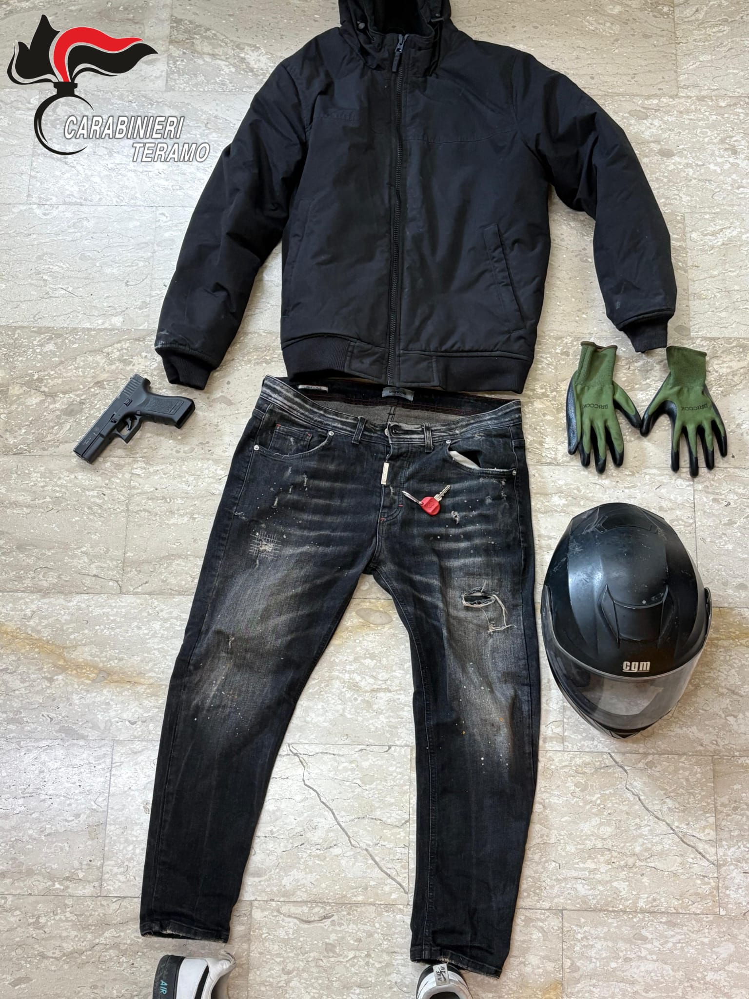 Tutti gli elementi raccolti hanno consentito di stringere il cerchio attorno all’uomo, poi trovato in possesso dell’abbigliamento indossato durante la rapina, il casco integrale e la pistola, che era una riproduzione.