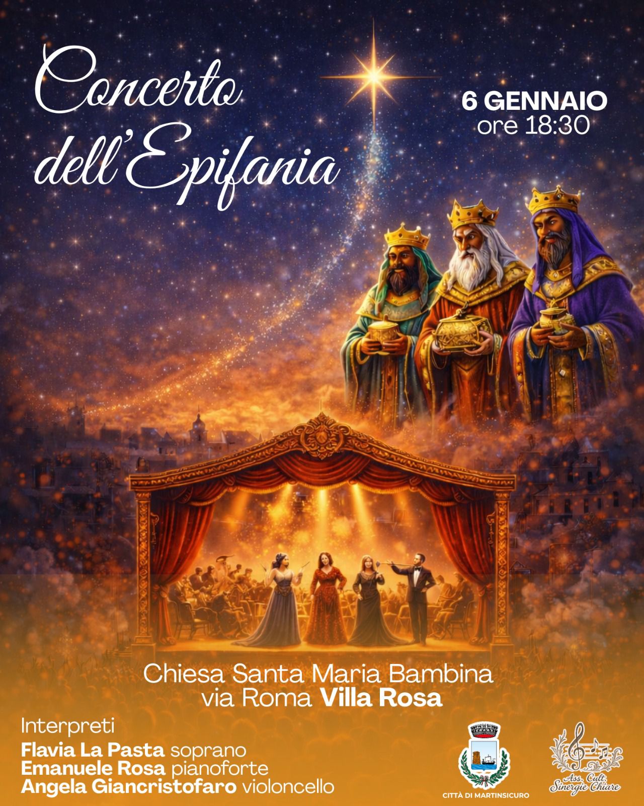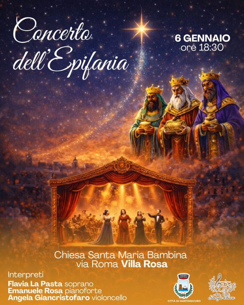 Il programma musicale prosegue il 6 gennaio, alle ore 18:30, con il suggestivo Concerto dell’Epifania, che si terrà nel silenzio raccolto della Chiesa di Santa Maria Bambina, in via Roma a Villa Rosa.