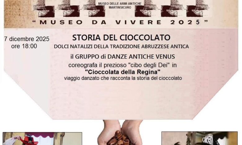 Martinsicuro. Il ciclo di appuntamenti del V Memorial Nino Torquati si chiuderà domenica 7 dicembre 2025 alle ore 18:00 al Museo delle Armi Antiche con una pomeridiana interamente dedicata al tema affascinante e goloso del cioccolato.
