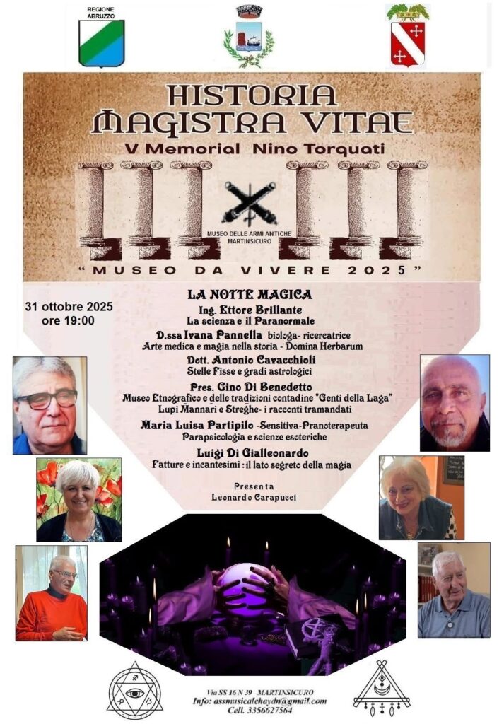 Martinsicuro. In occasione della notte di Halloween, venerdì 31 ottobre alle ore 19:00, il Museo delle Armi Antiche di Martinsicuro propone un appuntamento speciale dedicato al tema del soprannaturale e dell’horror, all’interno del ciclo culturale Historia Magistra Vitae – V Memorial Nino Torquati.
