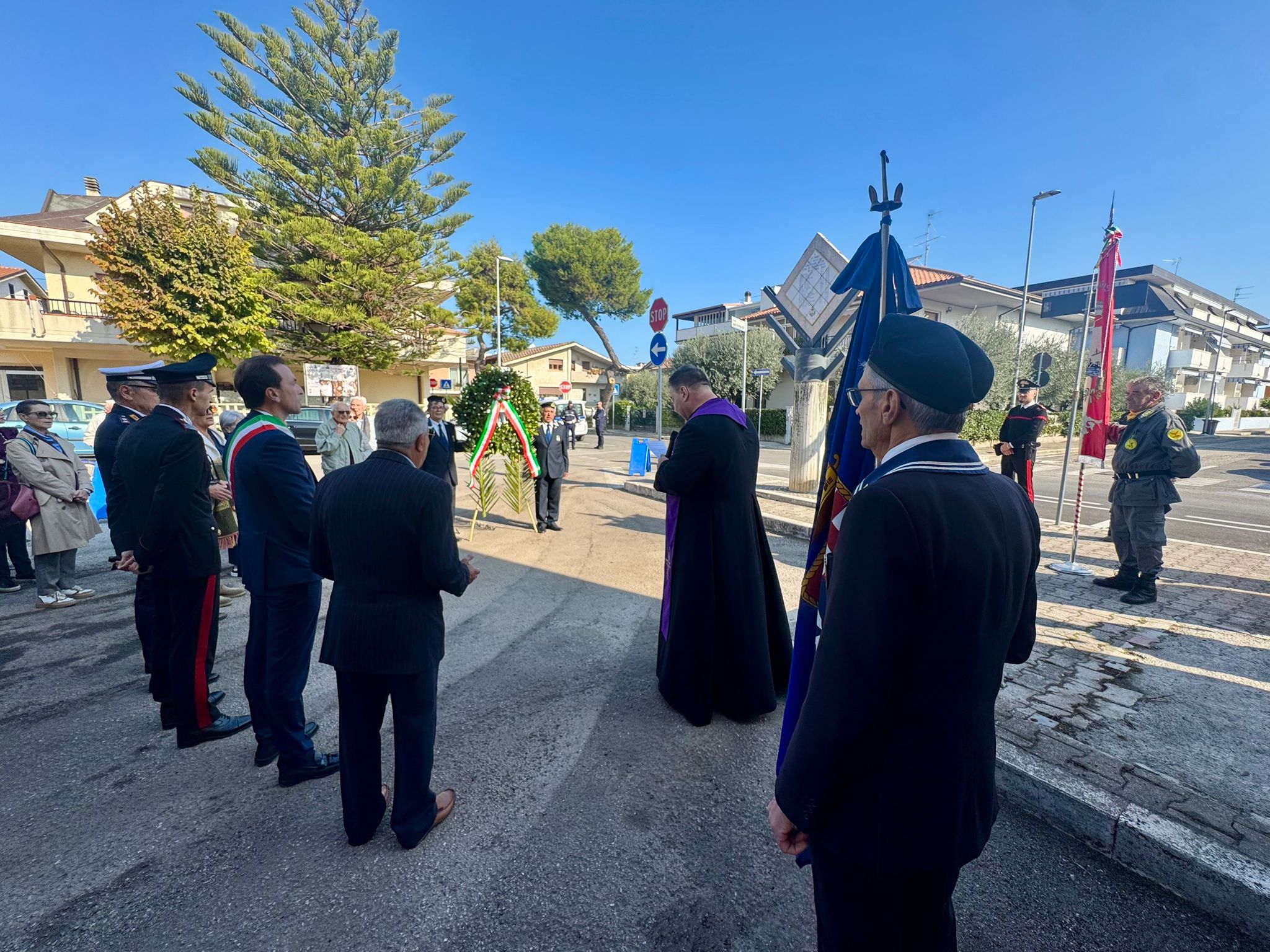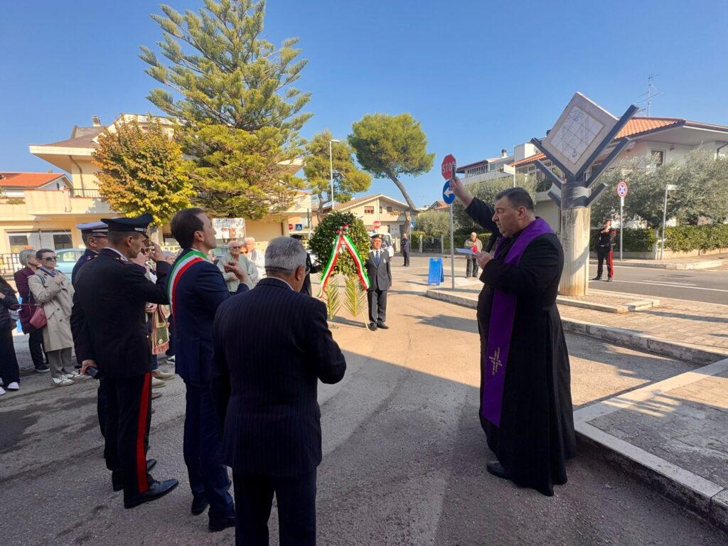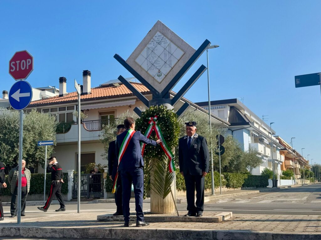 Alla cerimonia hanno preso parte il Sindaco di Martinsicuro, Massimo Vagnoni, le autorità militari, l’associazione Marinai d’Italia, le rappresentanze dei quartieri della città, Don Alfonso Rosati, e due classi della scuola secondaria di primo grado “Cristoforo Colombo” della città, accompagnati dal dirigente scolastico, Barbara Rastelli e dagli insegnanti del plesso.