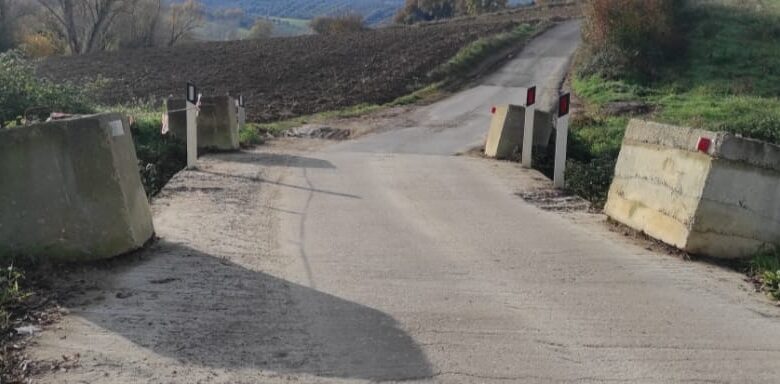 Sant’Omero. Blocchi di cemento posizionati in luogo dei guardrail in prossimità di un ponte nella zona di via Fosso Grande, tra Mosciano e Poggio Morello.