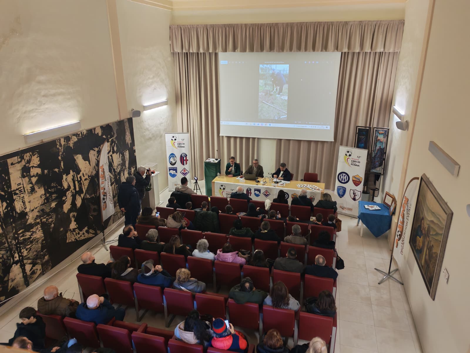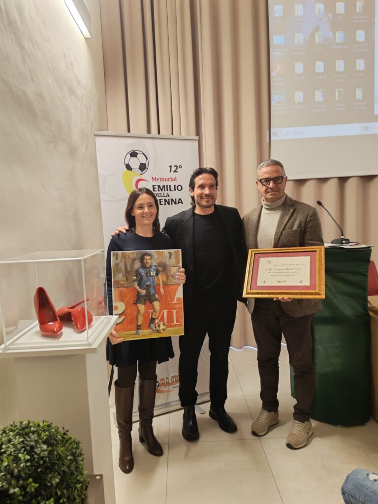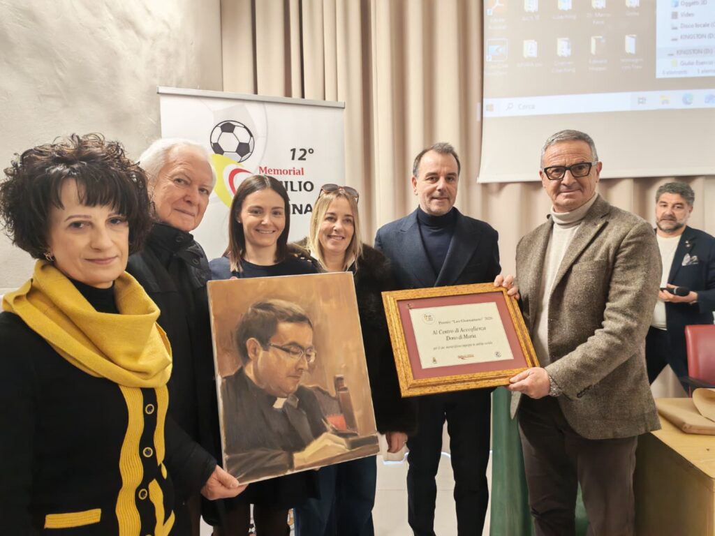 “Il Dono di Maria”, da decenni, offre sostegno alle persone in difficoltà economica, assiste quelle fragili, promuove l’aiuto allo studio. Al Presidente Paolo Massacesi e ad Eliana Marcone, sorella del compianto don Franco, hanno consegnato una targa ed un’opera di Edoardo Ettorre, Stefano e Manuela Giannattasio. Cristiano Del Grosso è stato invece premiato dal fratello Federico e da Giulio Ettorre. Erano presenti in sala diversi bambini della Scuola Calcio Giulianova, ovvero i primi destinatari del messaggio educativo, di solidarietà sociale e di sana sportività, che ha dominato l’evento.