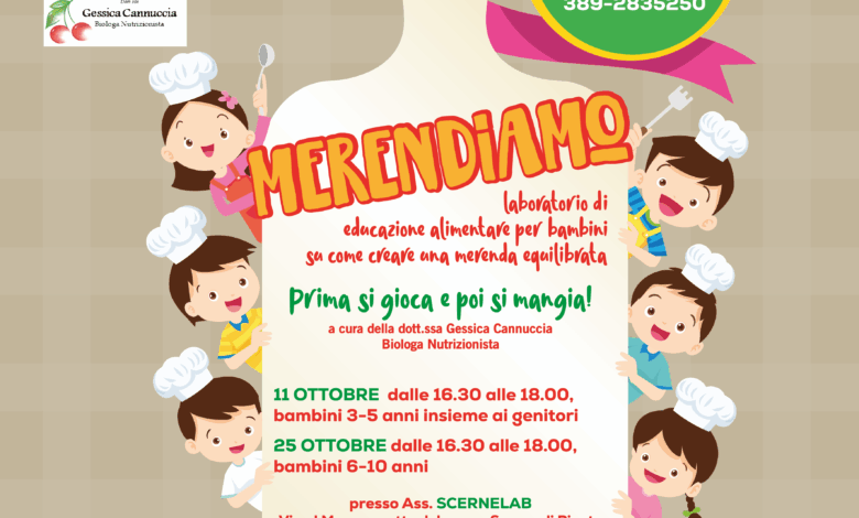 Pineto. Si chiama “Merendiamo”, il laboratorio di educazione alimentare dedicato ai bambini e alle loro famiglie in programma nella sede dell’Associazione Scerne Lab in Via al Mare (casetta del parco) a Scerne di Pineto, a cura della Biologa Nutrizionista, Gessica Cannuccia.