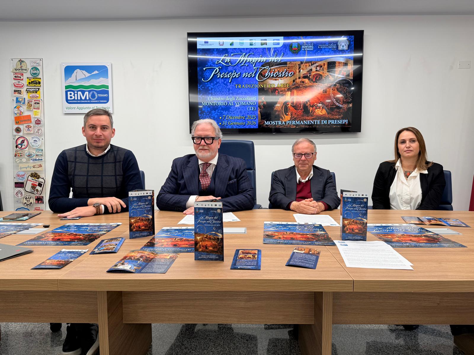 Un’esperienza unica tra tradizione, arte e cultura popolare, nel cuore di uno dei luoghi più suggestivi di Montorio. L’Associazione Culturale “Il Nuovo Chiostro” presenta la Mostra di Presepi artistici “La Magia del Presepe nel Chiostro – Tradizione ed Arte”, evento dedicato alla valorizzazione del presepe come simbolo con radici profonde nella tradizione popolare nazionale e locale, illustrato oggi in conferenza stampa dal presidente dell’associazione Maurizio Di Giosia, dall’assessore del Comune di Montorio Mariangela Cortellini, dai presidenti del Bim Marco Di Nicola e del Gal Gran Sasso Laga Carlo Matone.