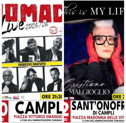 Il primo appuntamento è in programma il 12 giugno a Sant’Onofrio, in occasione dell’Aperipost 2026. Alle ore 22:00, in piazza Madonna delle Vittorie, salirà sul palco Cristiano Malgioglio con lo spettacolo “This is My Life”, un viaggio tra musica, televisione e racconto personale che sta portando in tournée in diverse piazze italiane. L’eclettico artista e showman italiano e’ molto amato dai giovani grazie alla sua partecipazione in qualita’ di giurato al talent “Amici” di Maria De Filippi.